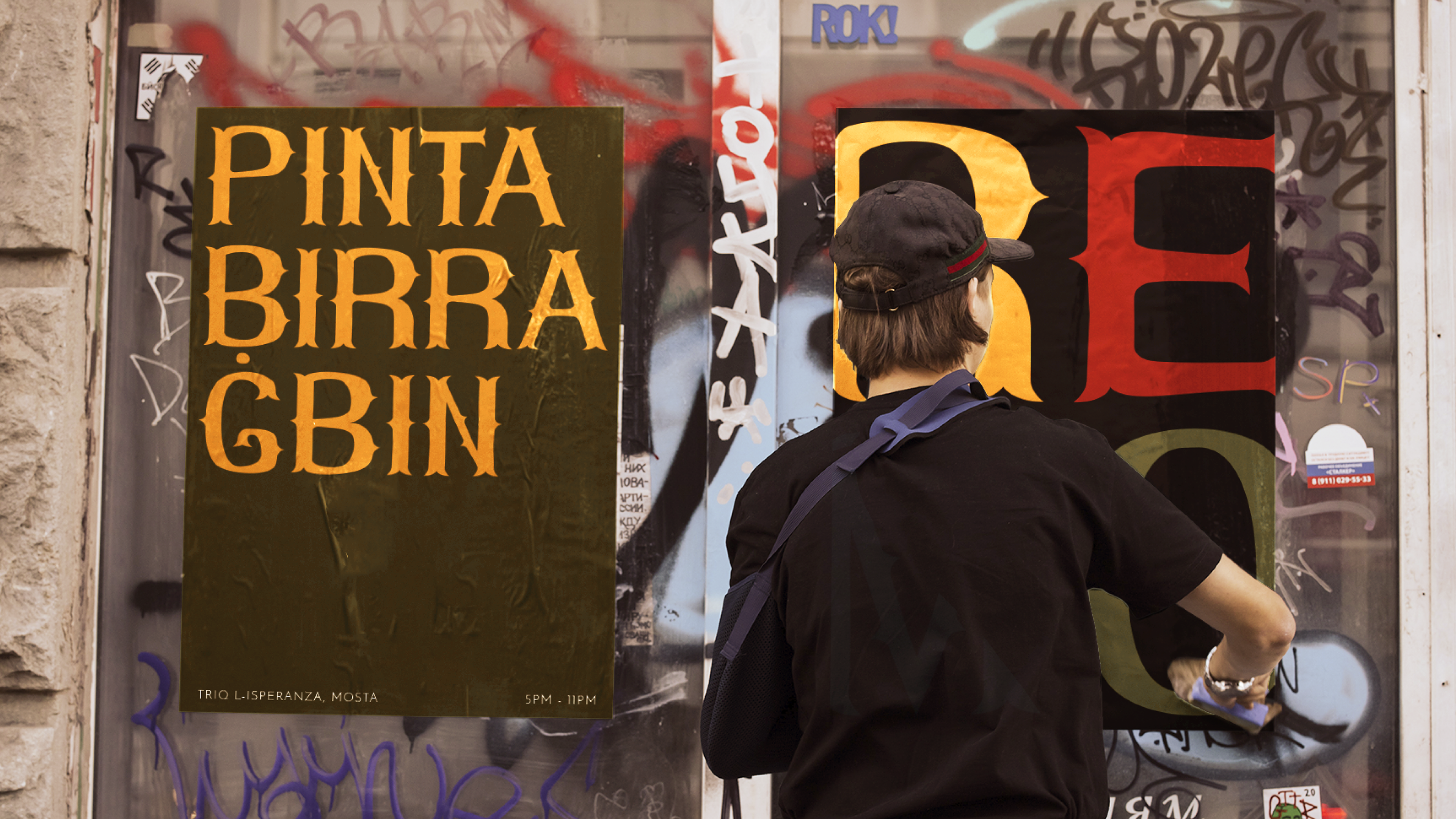 Designed typeface inspired by the Prickly Pear (Bajtar tax-Xewk) and a Mosta bar sign using Tberfil, a traditional Maltese style of signwriting.